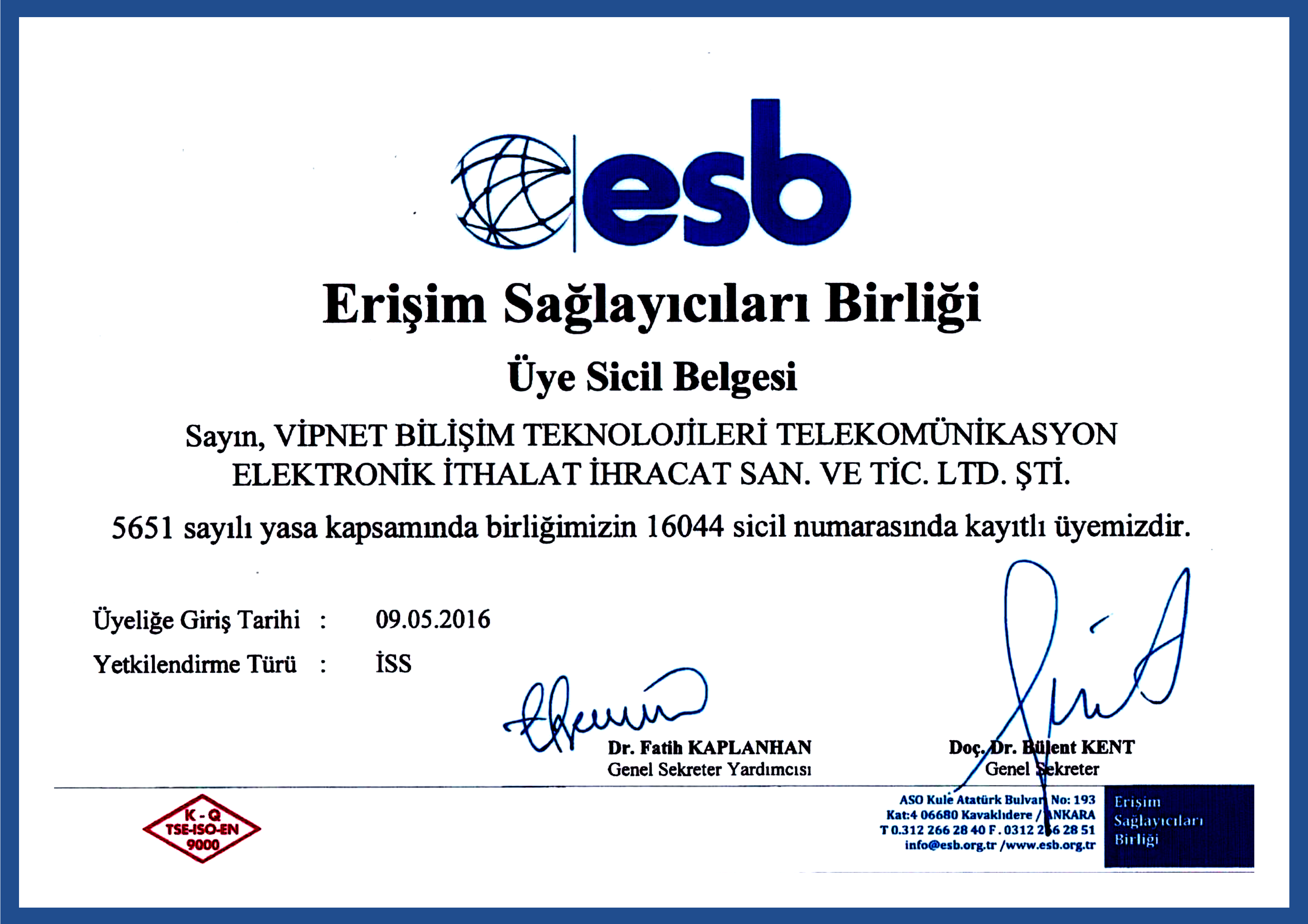 Vipnet Telekom Bilgi Teknolojileri ve İletişim Kurumu Başkanlığı (BTK) tarafından lisanlı bir İnternet Servis Sağlayıcısıdır (İSS). Türk Telekom ile Alt Yapı ve AL-SAT Sözleşmesi olan bir firmadır. Ayrıca Erişim Sağlayıcıları Birliğine (ESB) Tam üye bir Limited Şirketidir.